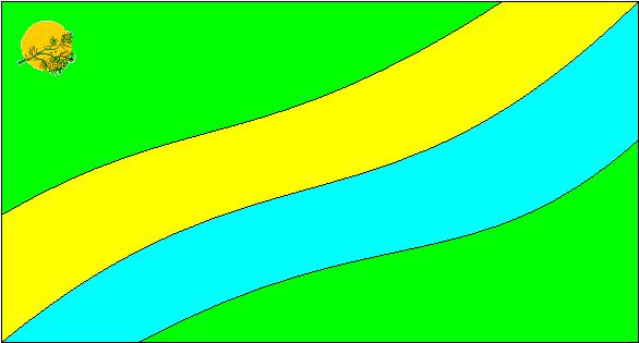 Например, флаг зелённого цвета. Посредине флага располагается малая эмблема: веточка кедра